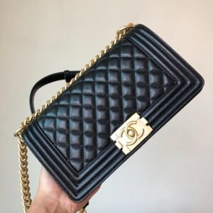 LEBOY CH@NEL Handbag Grained Calfskin & Gold-Tone Metal Black