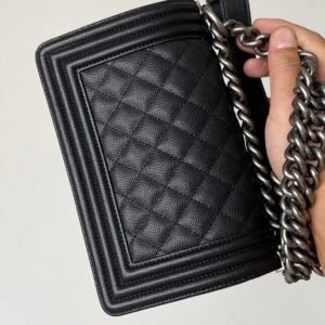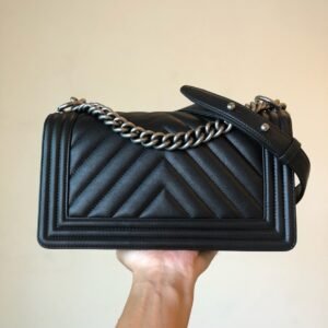 BOY CH@NEL Medium V Handbag Grained Calfskin & Silver-Tone Metal Black